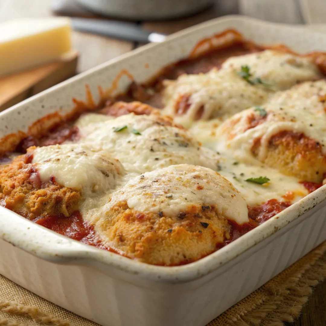 This chicken parmesan casserole takes the classic Italian favorite and turns it into an easy, baked comfort meal. Tender chicken breasts, marinara sauce, and perfectly melted mozzarella and parmesan cheese are layered over pasta for a dish everyone will love. It’s perfect for busy weeknights, family dinners, or make-ahead meals.