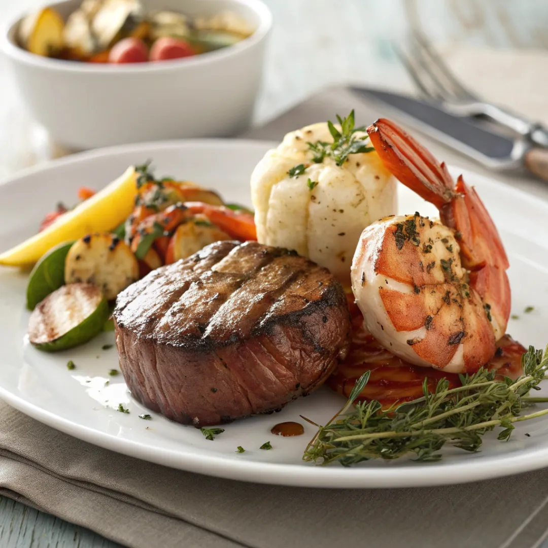 - Combines tender steak and juicy shrimp for a luxurious meal