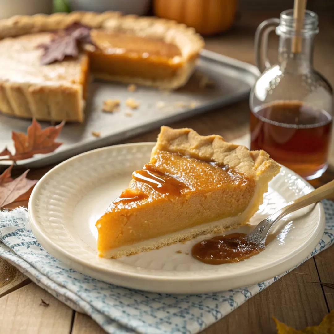 Maple Syrup Pie tastes rich, buttery, and deeply sweet with a smooth custard texture. The maple flavor shines without overpowering the palate.