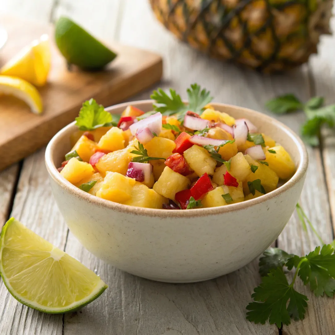 This Pineapple Salsa brings bright flavor and fresh texture to any meal with very little effort. Juicy pineapple pairs beautifully with crisp vegetables, fresh herbs, and a squeeze of lime for a sweet and tangy balance. It works as a dip, taco topping, or side dish and comes together in minutes.