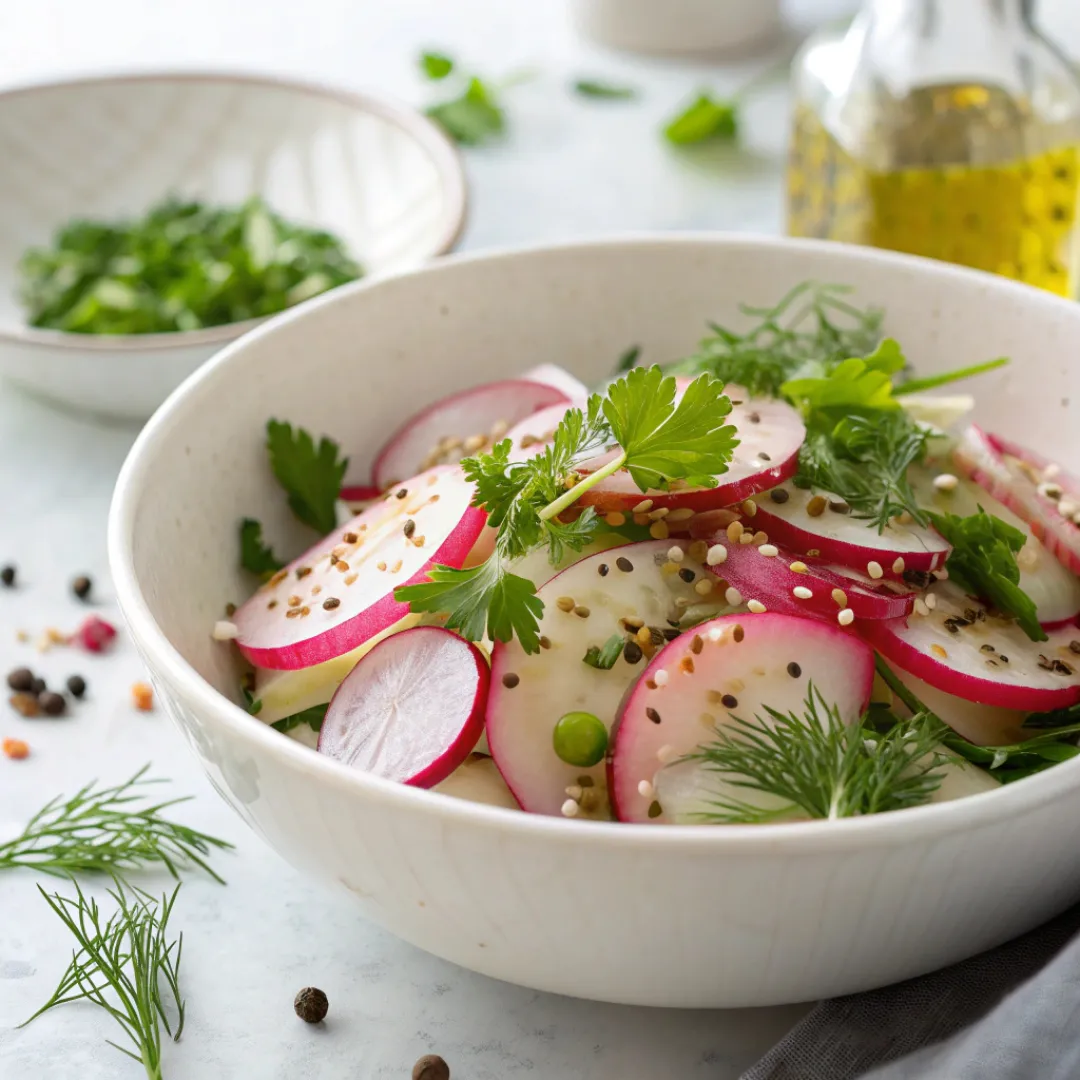 Spring Radish Salad is a crisp, refreshing, and colorful side dish perfect for brightening up any meal. Thinly sliced radishes, cucumbers, and fresh herbs tossed in a light lemon vinaigrette create a vibrant and flavorful salad. This quick-to-make recipe is perfect for weeknights, picnics, or as a light starter.