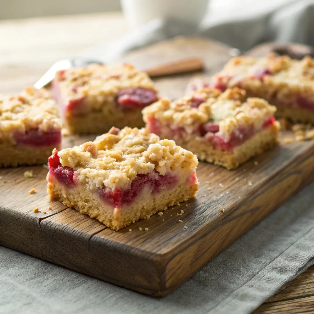 Rhubarb Crumble Bars are tangy, buttery dessert bars with a golden crumble topping, perfect for dessert, brunch, or gifting.