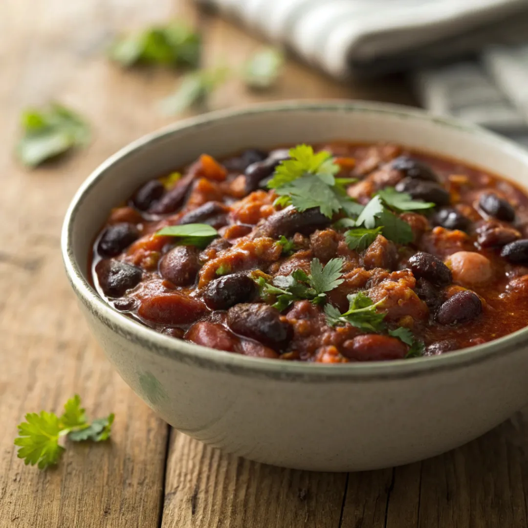 Three Bean Meatless Chili is a hearty, comforting, and protein-packed meal made entirely with pantry staples. Loaded with beans, vegetables, and warming spices, this chili delivers bold flavor without any meat. It’s perfect for busy weeknights, cozy weekends, or healthy meal prep.
